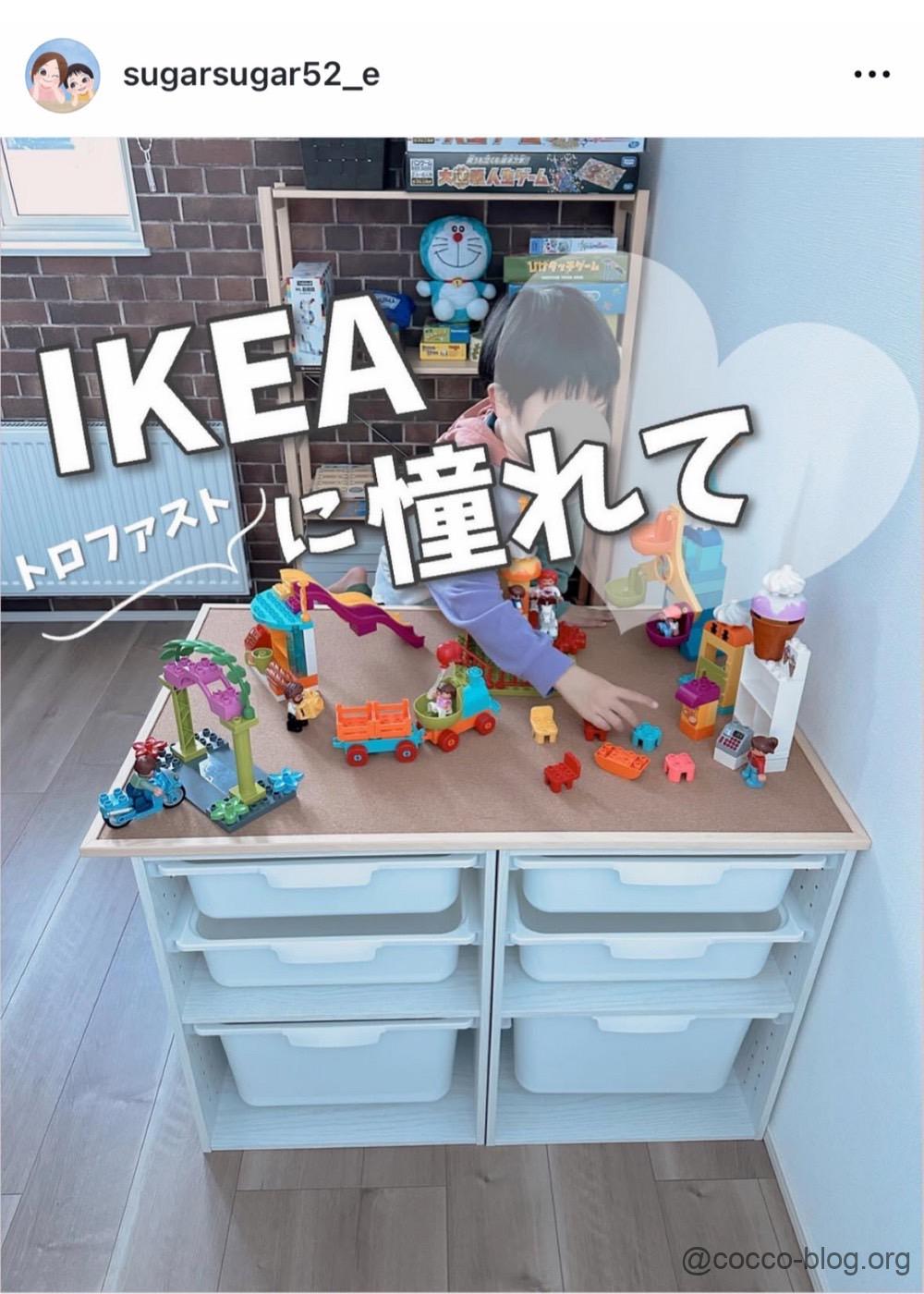 中でも、IKEAの「トロファスト」は、値段も手頃なうえに、おしゃれで、収納でありながら上部はプレイテーブルのように遊びにも使えるという万能アイテム。